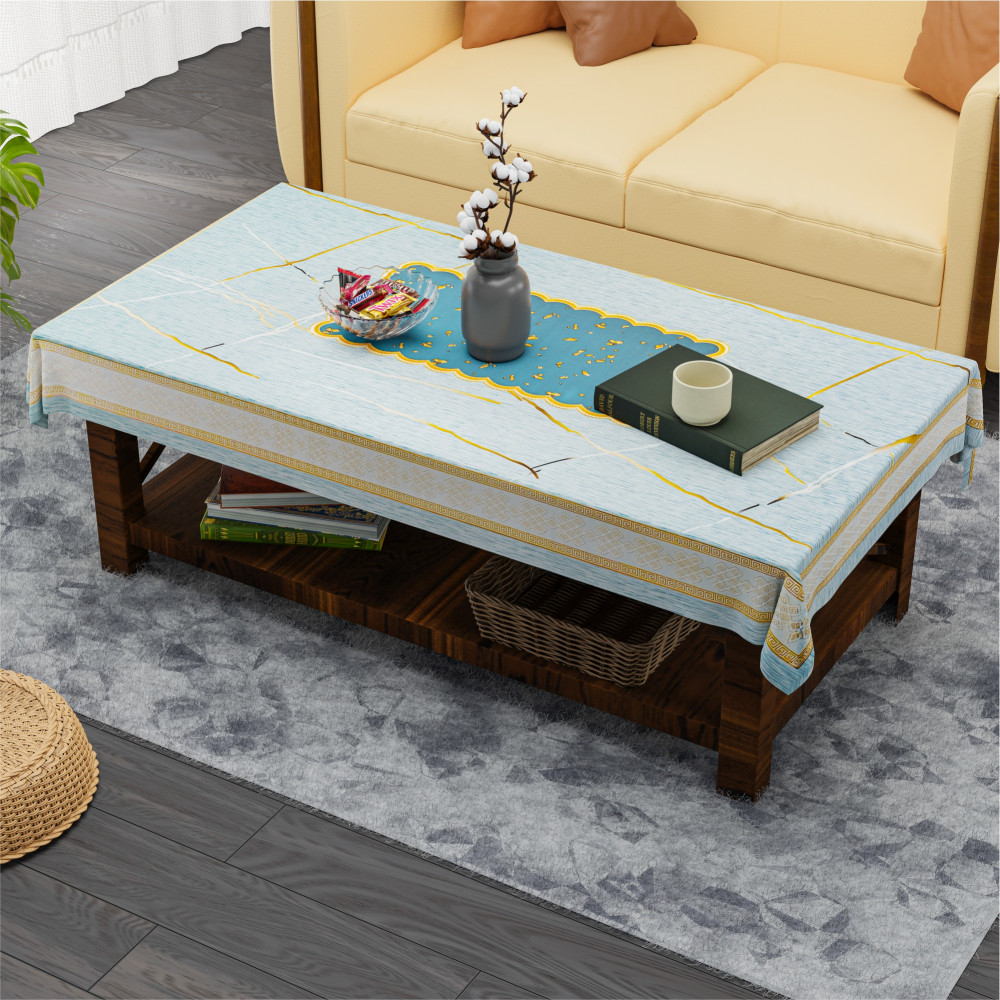 Kuber Industries Washable Net Dining Table Cover | Durable Table Protector Cover for Home, Office & Dining Room | Dining Table Cloth Sheet | Floral Design - Aqua & White