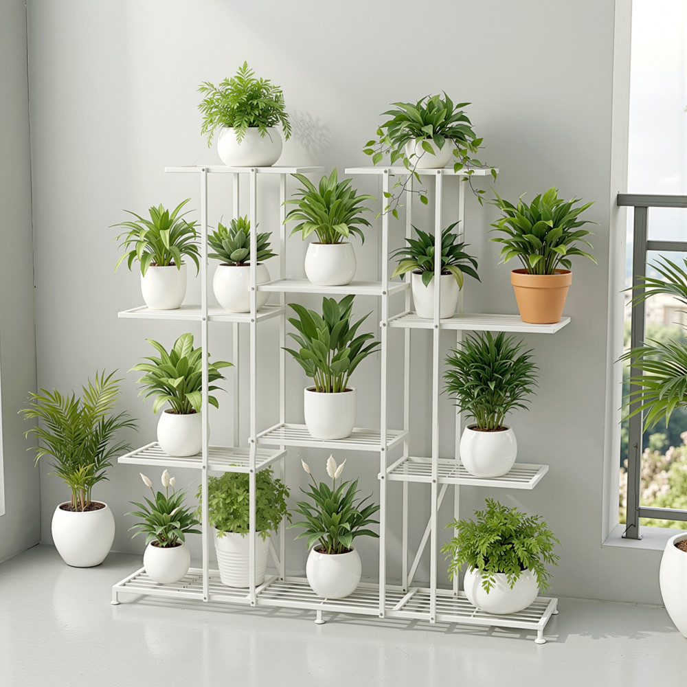 STRONG METAL CONSTRUCTION - Sturdy metal frame keeps pots stable and helps support weight when fully loaded, making it suitable for daily watering and plant care. The structure stands firmly on flat floors, so you can place this plant rack against a wall, near windows or in room corners.