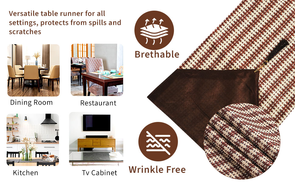 WIDE APPLICATION - The centre table decor runner will grace every occasion and add to the festive look, perfectly table decoration for room and outdoor decor such as kitchen table, dining table, book desk, storage table, wedding table, picnic table, outdoor coffee table and tea table etc
