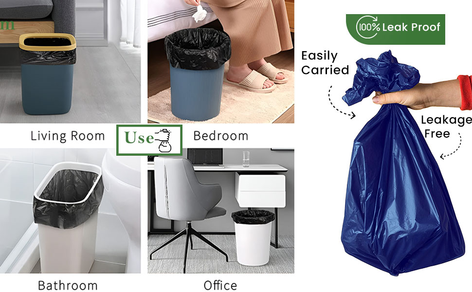 MULTI-PURPOSE BAGS FOR ALL NEEDS : Our Garbage Bags can be used for Office, Kitchen, Bathroom, Bedroom, Living Room, Baby diapers, Car, Kitchens, restaurants, beauty parlor, saloons, washrooms, toilets, malls, shops etc. After the bag in the container is filled with waste.