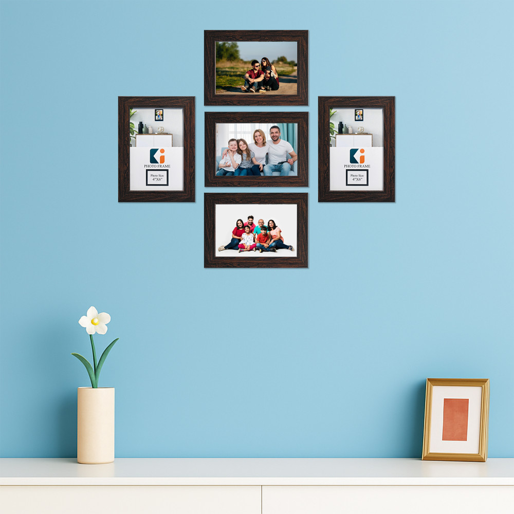 Package CONTAINS - (5 Pcs) Wall Hanging Photo Frame | Color - Brown | Material - Cardboard/Acrylic | Product Dimensions - 14 cm x 2 cm x 19 cm