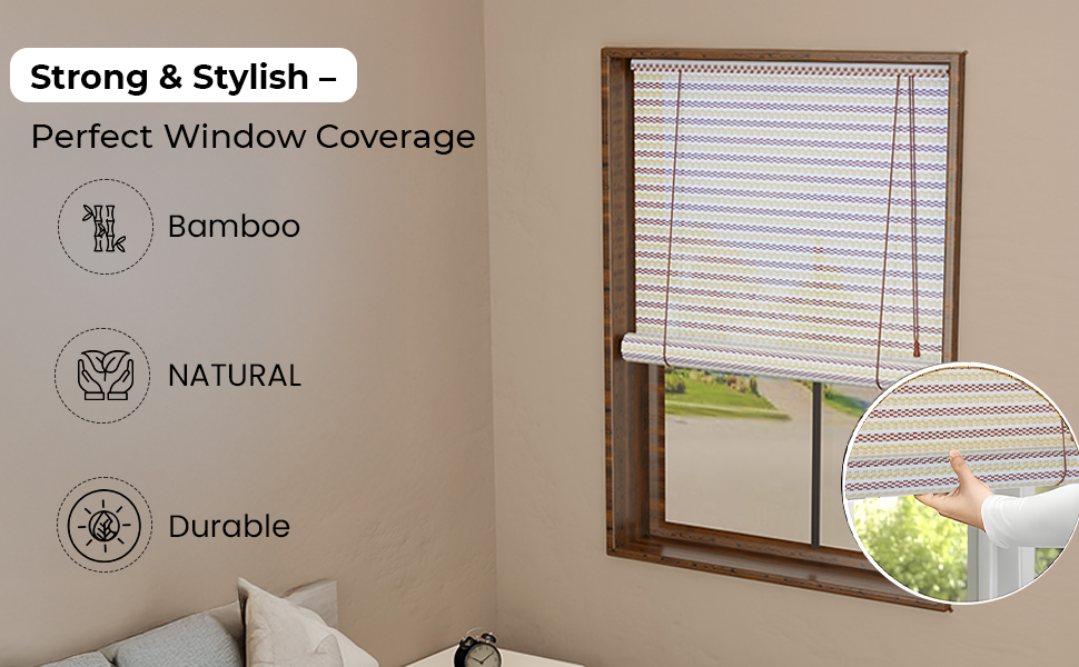 DURABLE MATERIAL FOR LONG- LASTING- Made from natural, heavy- duty bamboo, these blinds offer perfect window & balcony coverage. Office blind curtains for windows feature bamboo sticks securely tied with cotton cord.