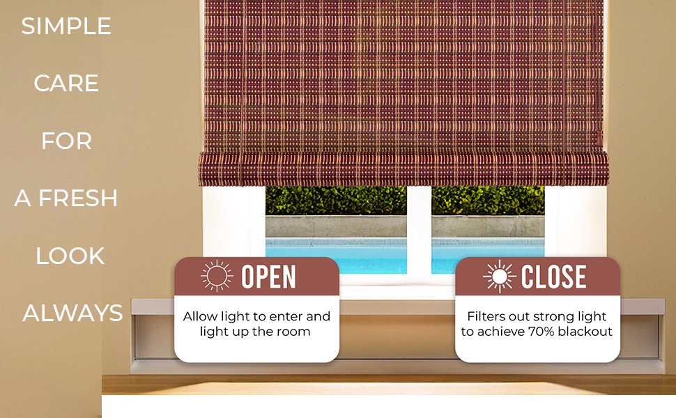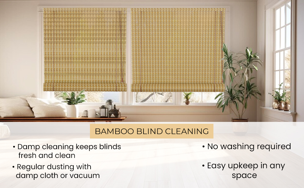 EASY MAINTENANCE WITH MINIMAL EFFORT- No washing needed—just dust with a soft, damp cloth or vacuum regularly. Damp cleaning keeps bamboo blinds rolling for home looking fresh & clean for easy upkeep in any space.