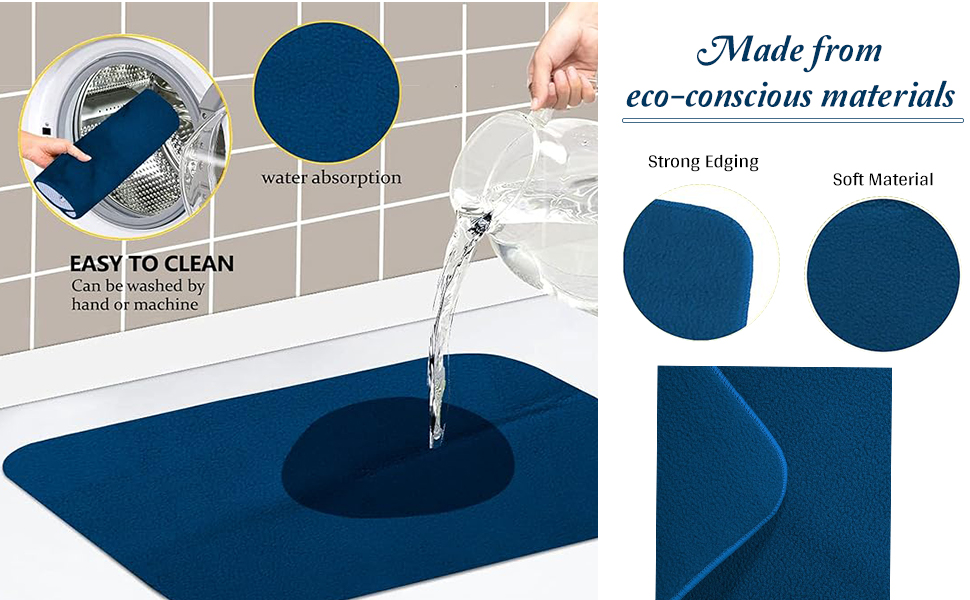 EASY CLEANUP, NO STRESS - Machine washable for easy care, this drying mat for kitchen utensils absorbs water fast, keeping your kitchen spotless without the extra effort. Clean dishes, clean countertops - it's that simple.
