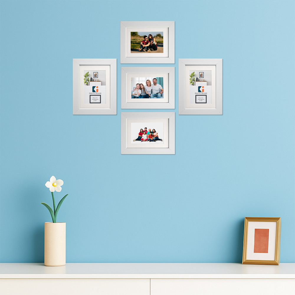 Package CONTAINS - (5 Pcs) Wall Hanging Photo Frame | Color - White | Material - Cardboard/Acrylic | Product Dimensions - 19 cm x 2 cm x 23 cm