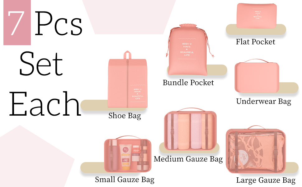 PACKAGE CONTAINS - 7 Pcs Travel Bag - 7 Pcs Set Each | Color - Gray | Material - Twill | Product Dimensions - Bundle Pocket - 36x1x27 cm, Flat Pocket - 27x1x16 cm, Shoe Bag - 21x10x34cm, Underwear Bag - 28x20x11 cm, Small Gauze Bag - 30x22.5x12 cm, Medium Gauze Bag - 32x25x11 cm, Large Gauze Bag - 40x30x12 cm