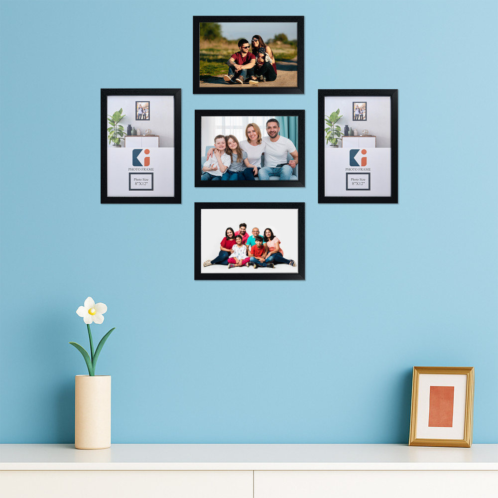 Package CONTAINS - (5 Pcs) Wall Hanging Photo Frame | Color - Black | Material - Cardboard/Acrylic | Product Dimensions - 24 cm x 2 cm x 34 cm