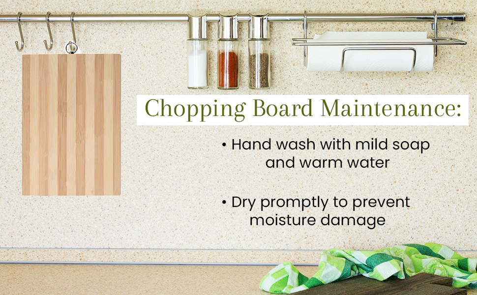 EASY MAINTENANCE - Cleaning the chopping board is a breeze. Simply hand wash it with mild soap and warm water after each use. Avoid soaking the board and promptly dry it to prevent any moisture- related damage.
