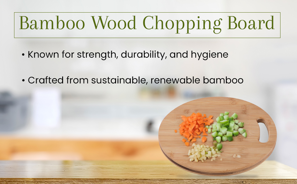 SUSTAINABLE BAMBOO WOOD - Our chopping board is crafted from bamboo wood, a sustainable and renewable resource. Bamboo is known for its strength, durability, and making it an excellent choice for a hygienic cutting surface.