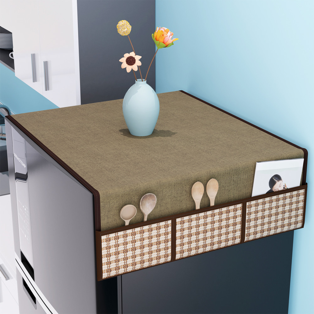 Package CONTAINS - (1 Pcs) Fridge Top Cover | Color - Big Patta - Brown | Material - Jute | Product Dimensions - 98 cm x 54 cm x 1 cm