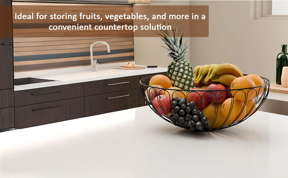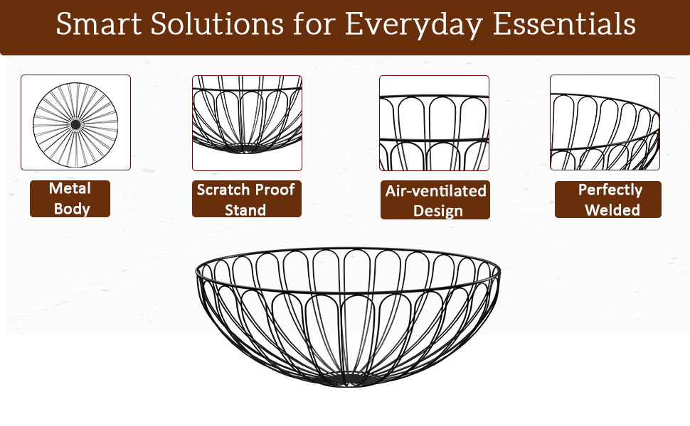PACKAGE CONTAINS - 1 Piece Fruit & Vegetable Basket Bowl | Color - Black | Material - Metal | Product Dimensions - 26 cm x 26 cm x 12 cm