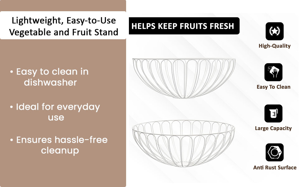 MATERIAL - Kuber Industries made fruit baskets from strong and durable metal which provides a sturdy base for holding heavy fruits and veggies, making this fruit stand super reliable for daily use.