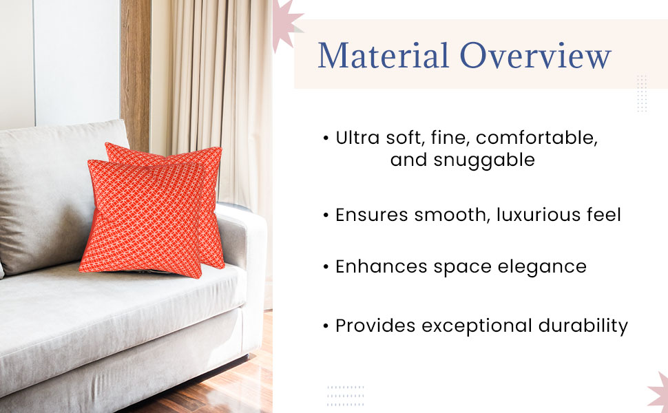 MATERIAL - Made with ultra soft, fine, comfortable and, snuggable material, ensuring a smooth, luxurious feel and long- lasting comfort. The high- quality pillow covers for sofa cushions material enhances the elegance of your space while providing exceptional durability