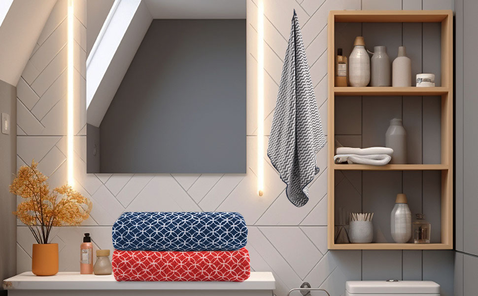 QUICK- DRY WITH HANGING LOOP - This bath towel for bathroom comes with an easy- access hanging loop. The medium size works great at home, gym, or during travel. Dries fast and stays fresh, making it ready for your next use.