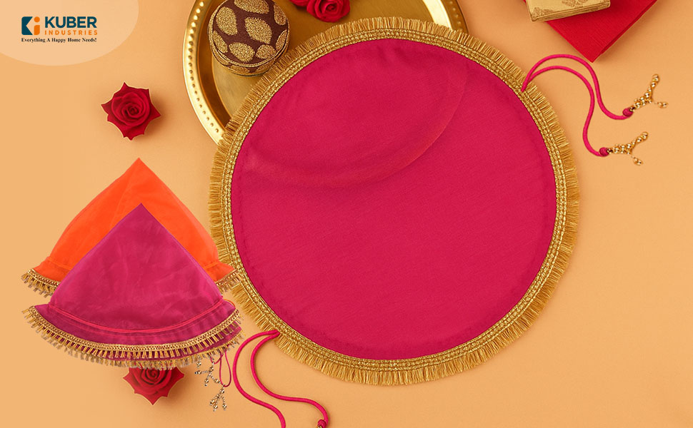 FOR WEDDINGS - This elegant Thalposh for wedding adds a touch of sophistication and tradition to your wedding ceremony. It not only enhances the visual appeal of the wedding thali but also serves as a beautiful presentation for wedding gifts.