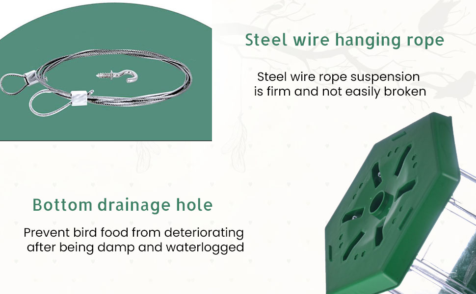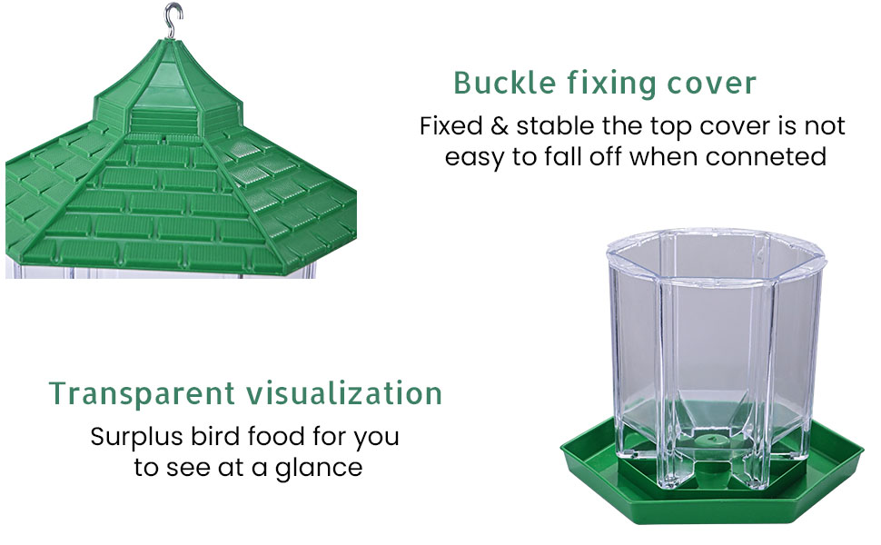 MATERIAL- Plastic Material is food grade and bird feeder comes in Green colour which makes bird feel safe and eat seeds from feeder.