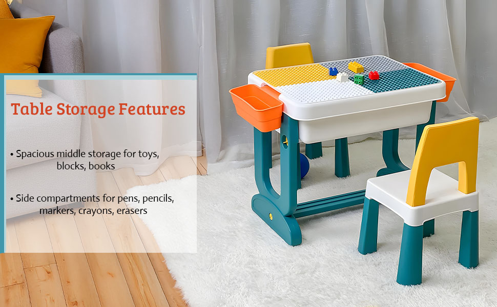PERFECT STORAGE FOR ESSENTIALS - There is a spacious storage in the middle of the table in which children can keep their toys, blocks, books or other things. There are 2 side storage compartments on both sides of the table in which children can keep their pens, pencils, markers, crayons & erasers