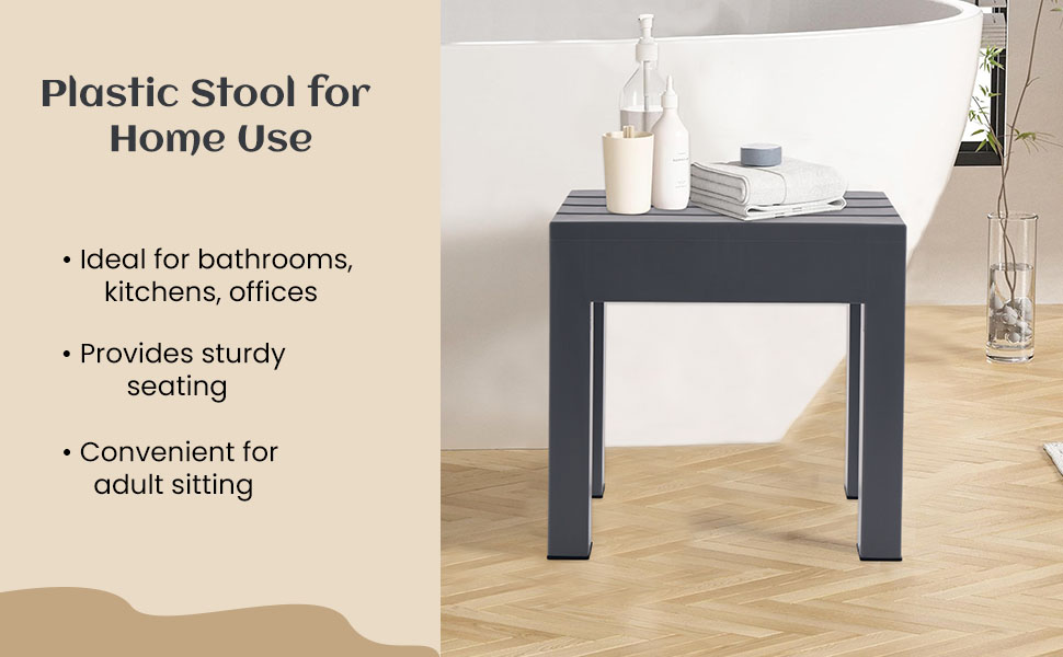 HOME & OFFICE STOOL: This plastic stool for home use is not only great for bathrooms but can also be used in kitchens, offices or any space that requires a sturdy seat. It serves as a convenient Stool for sitting for adults.