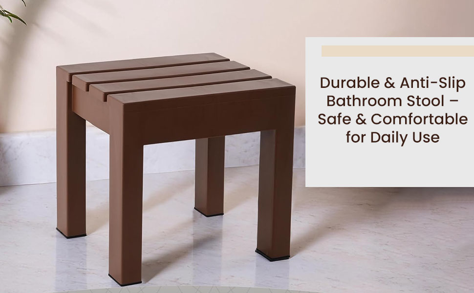 DURABLE BATHROOM STOOL: This plastic stool for sitting is perfect for your bathroom, offering a safe and comfortable seating option with its anti- slip design. Ideal for all ages, and comfort while you use it for daily routines.