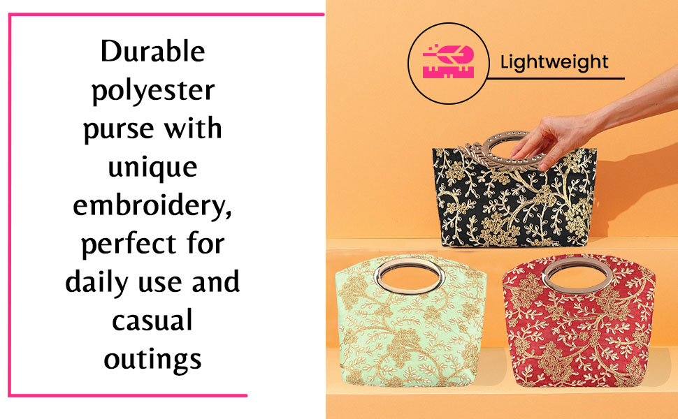 Package CONTAINS - (1 Pcs) Hand Purse | Color - Embroidery Design - Green | Material - Polyester | Product Dimensions - 26 cm x 5 cm x 18 cm