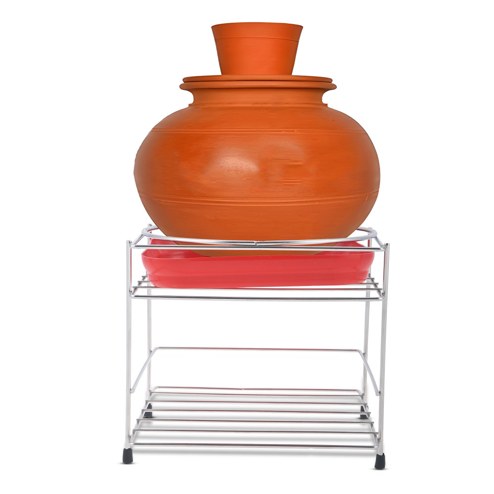 SPACE-SAVING FUNCTIONALITY - Utilize this earthen pot stand in your kitchen or office to optimize space usage. It efficiently organizes your water pot, glass, and water collection tray, keeping your area tidy and accessible.