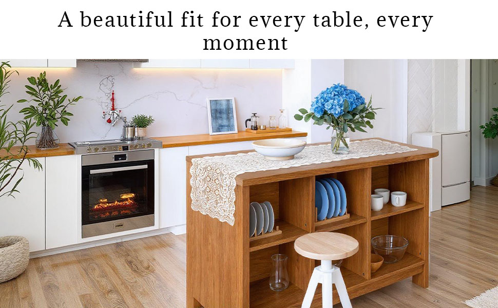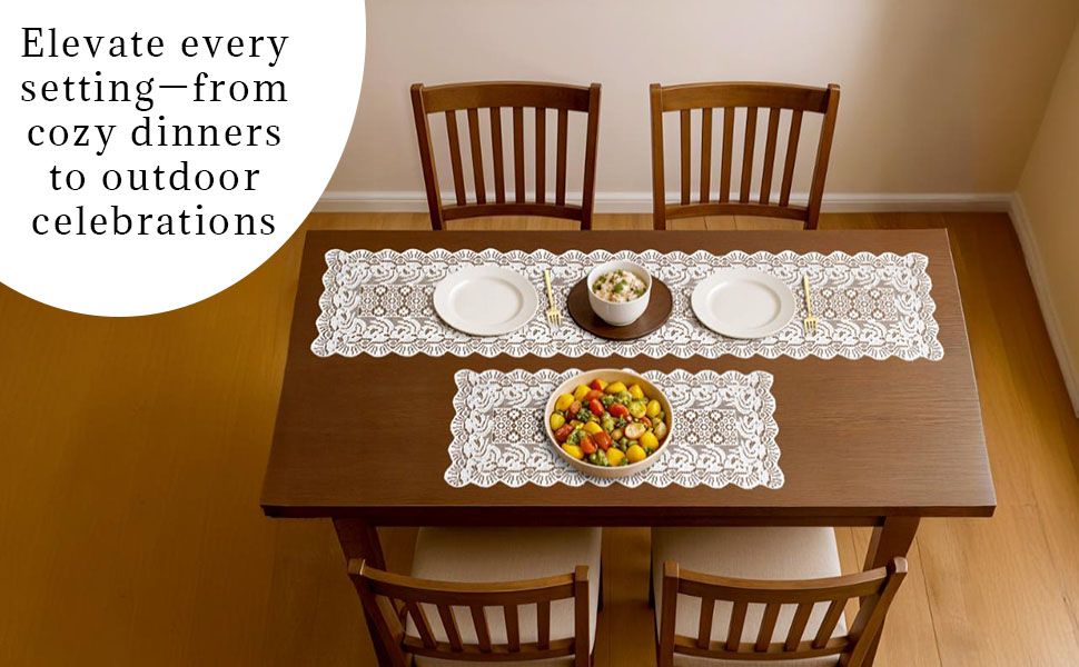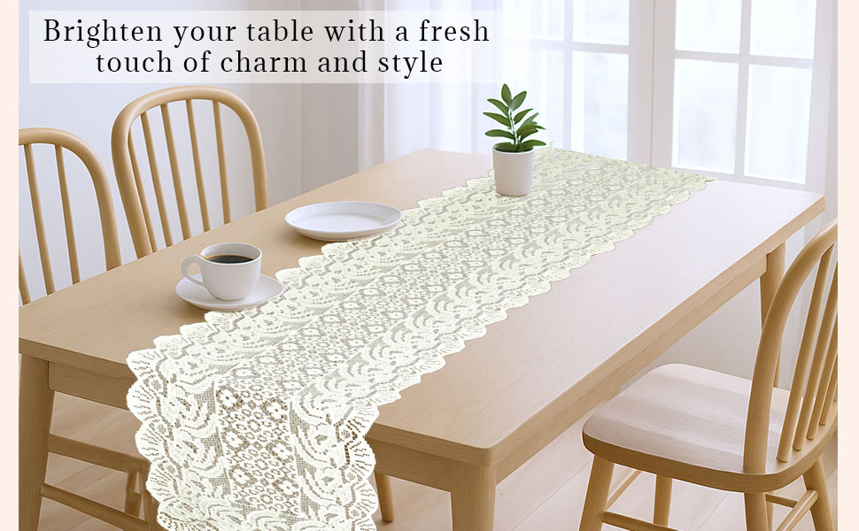 Package CONTAINS - (2 Pcs) Small and Large Table Runner Set | Color - Cream Plain Net Vintage | Material - Net Cotton | Product Dimensions - (Small 90 cm x 36 cm x 1 cm),(Large 180 cm x 36 cm x 1 cm)