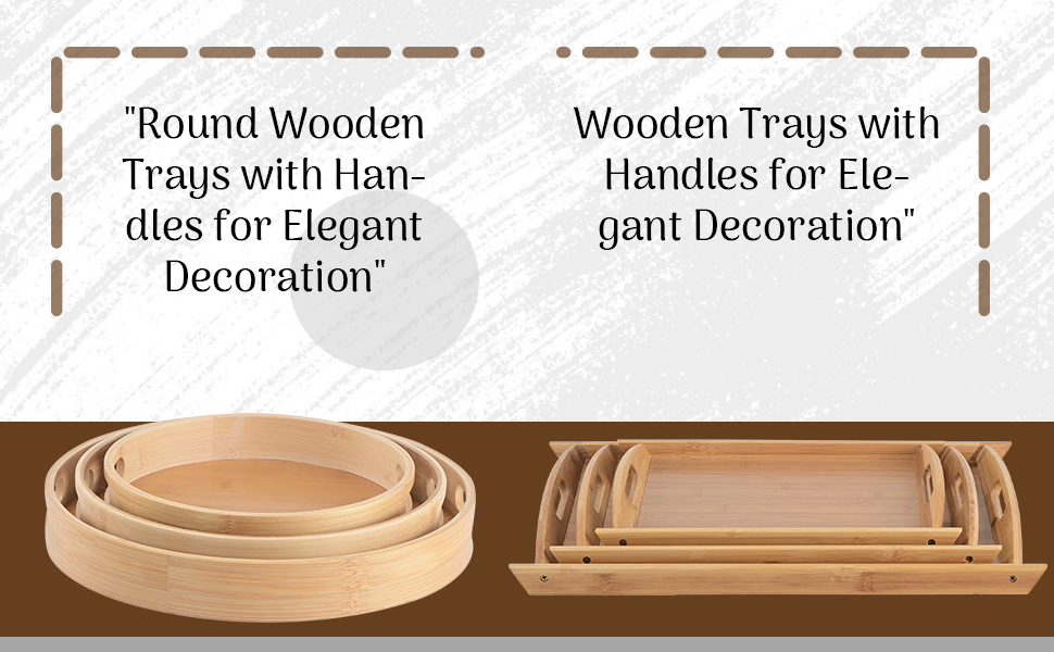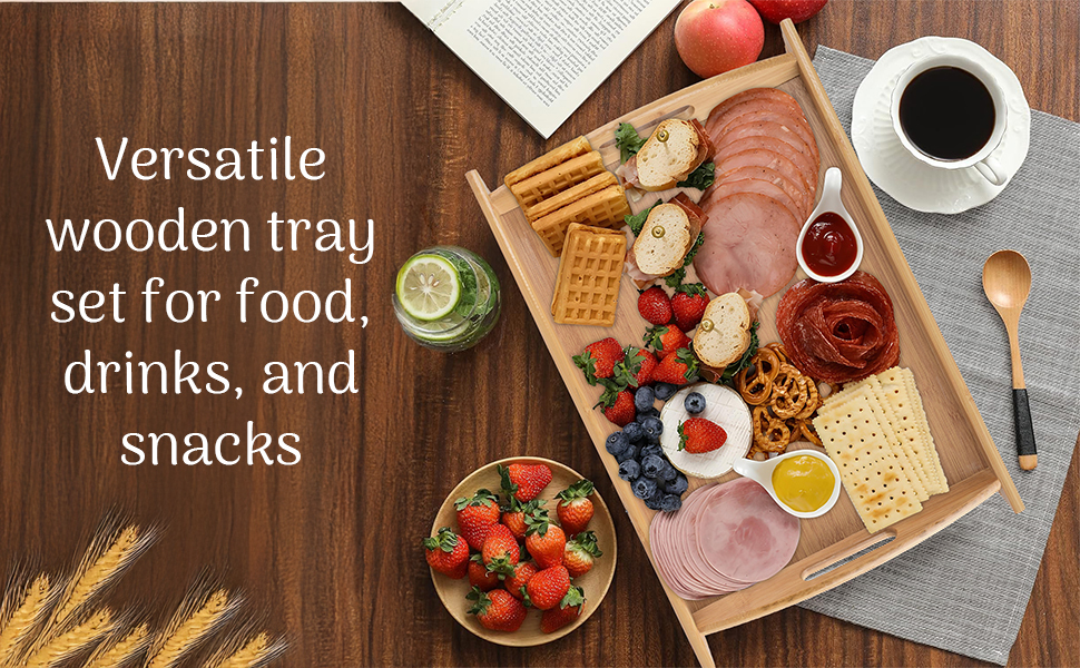 SIMPLE - STYLISH AND SUSTAINABLE - This wooden serving tray set is perfect for serving food, drinks, or snacks. Elegant and eco- friendly, these serving platters add a touch of charm to any occasion while being practical and durable.