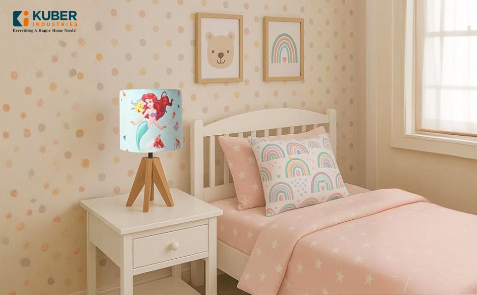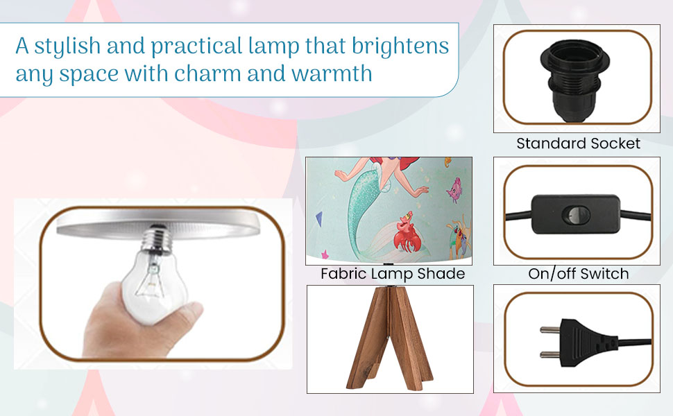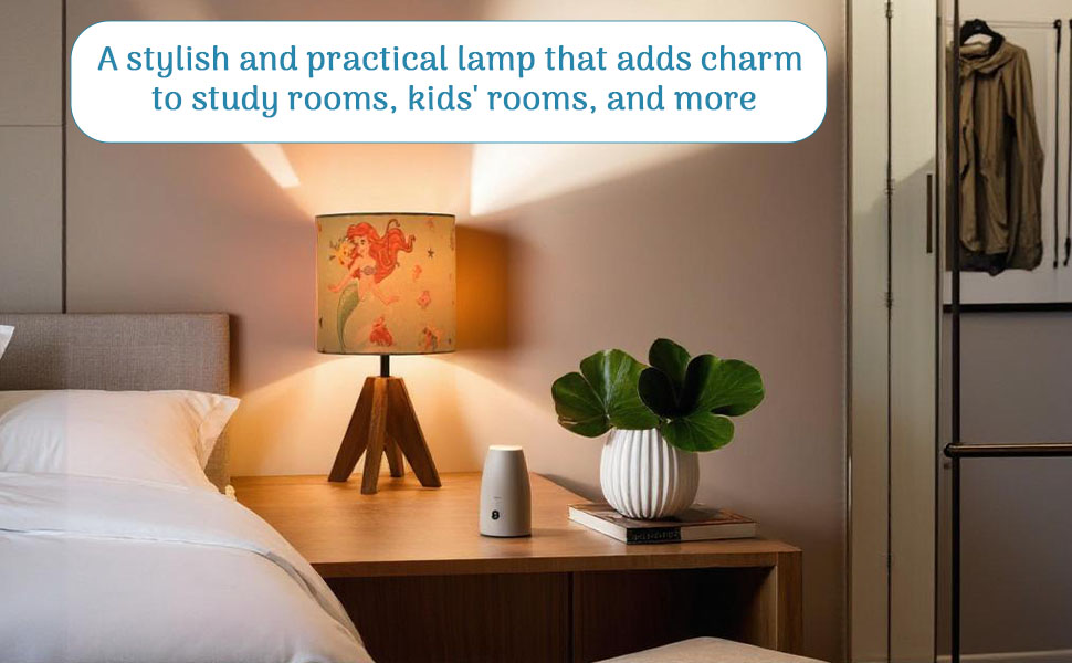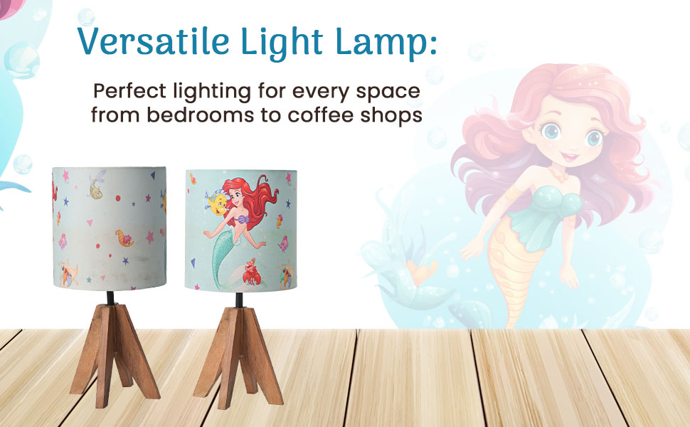 Package CONTAINS - (1 Pcs) Table Lamp | Disney Mermaid - Green | Material - Cover (Pvc & Polyester) + Stand (Engineered Wood) | Product Dimensions - 20 cm x 20 cm x 41 cm
