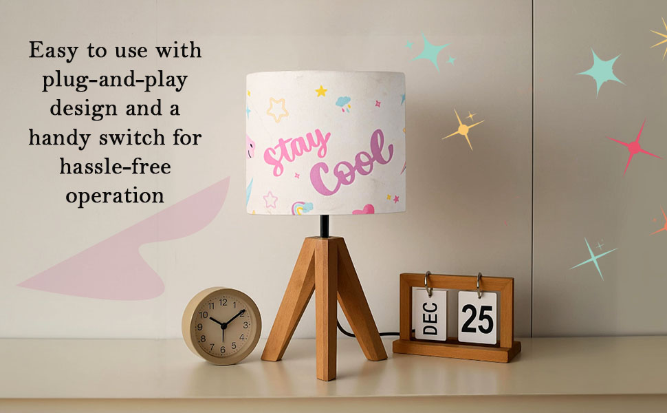 Package CONTAINS - (1 Pcs) Table Lamp | Unicorn Stay Cool - Pink | Material - Cover (Pvc & Polyester) + Stand (Engineered Wood) | Product Dimensions - 20 cm x 20 cm x 41 cm