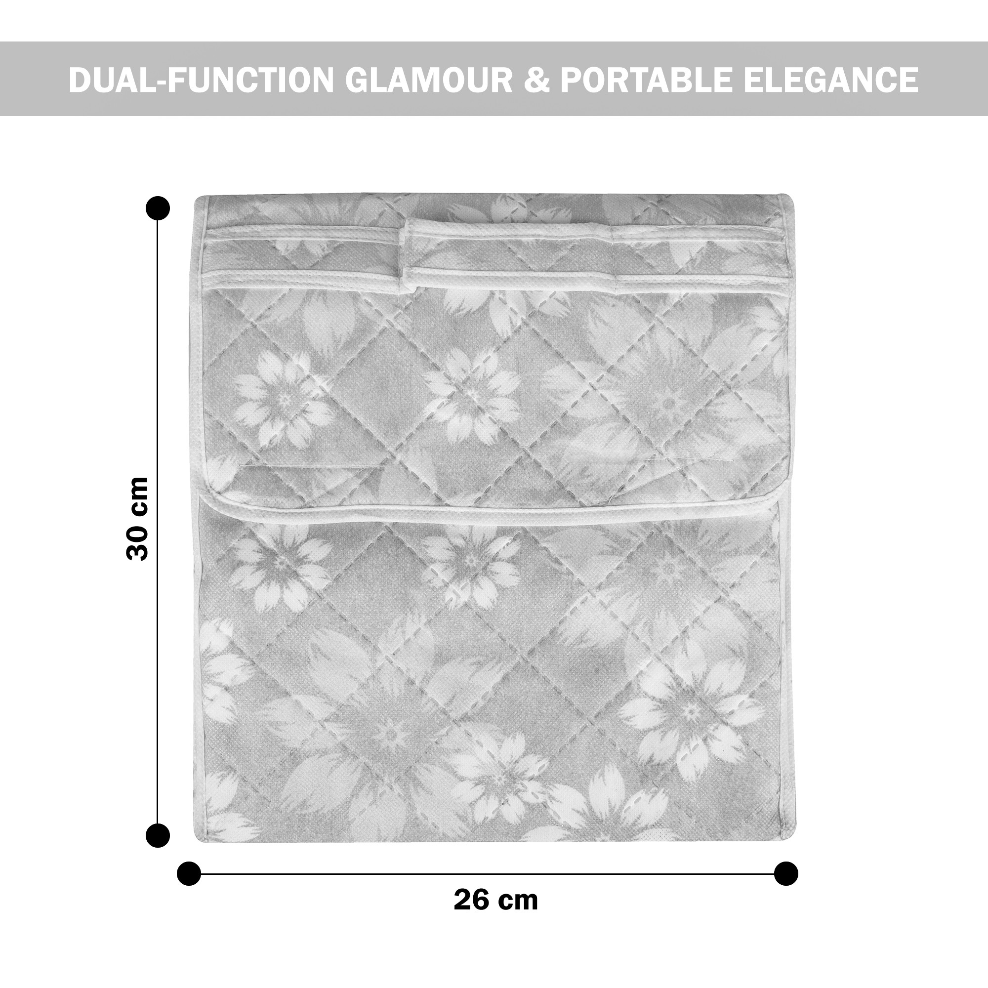 PACKAGE CONT AIN : 1 Piece Travel Storage Organizer | Flower Quilted | MATERIAL : Non-Woven | PRODUCT DIMENSION : 30 cm x 26 cm x 2 cm