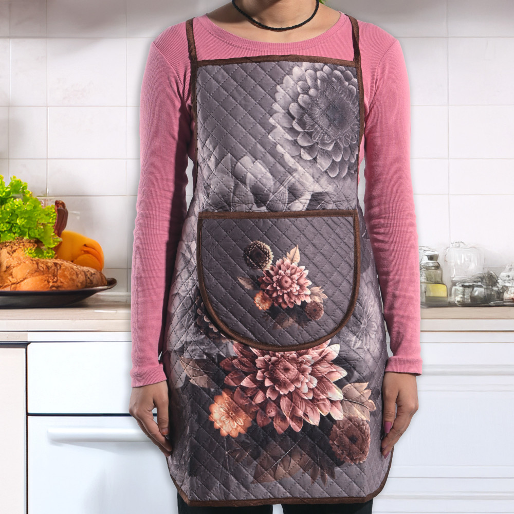 Package CONTAINS - (1 Pcs) Apron | Color - Gulab - Grey & Brown | Material - Velvet | Product Dimensions - 68 cm x 1 cm x 56 cm