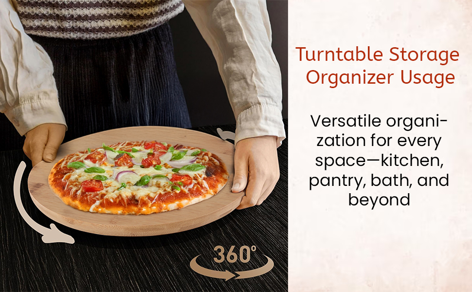 360° REVOLVING DESIGN - Easy access to items with a smooth turntable. This organizer operates on smooth- gliding, ball bearings for an easy spin every time. Steady spinning base plate enables easy access to your necessities at 360°. It makes every item easy to reach, even when it is stored on upper shelves.