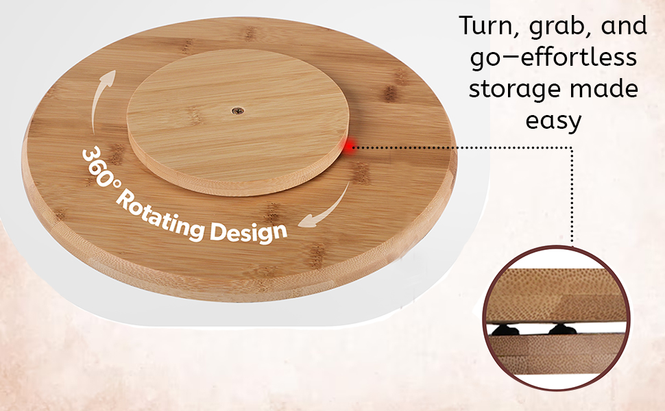 PACKAGE CONTAINS - 1 Piece 360° Turntable Storage Stand | Color - Brown | Material - Bamboo Wooden | Product Dimensions - 30 cm x 30 cm x 2 cm