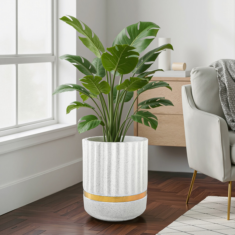 PREMIUM LOOK FOR DECOR - Speckled body with a sleek gold band elevates living room corners, entryways, cafes, and office reception areas without needing ceramic weight or risk of breakage. The ribbed texture hides water marks and dust, keeping the pot neat on floors and tiles; wipe with a damp cloth for quick cleaning. Ideal for gifting housewarming and festive decor setups.